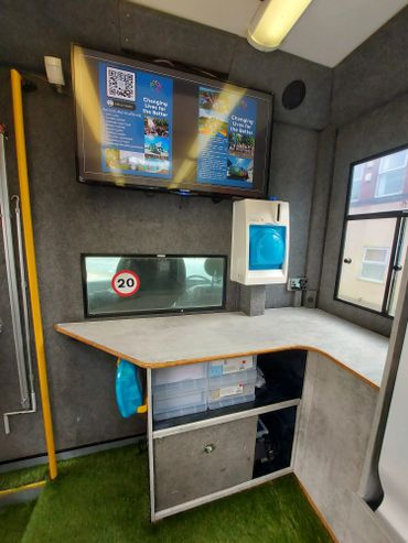 The Base phase 2 renovations were completed in house by the WYCP team in September 2022- adding screens, vinyl wrapping the cupboards and surfaces, and adding a fridge for refreshments on the go.